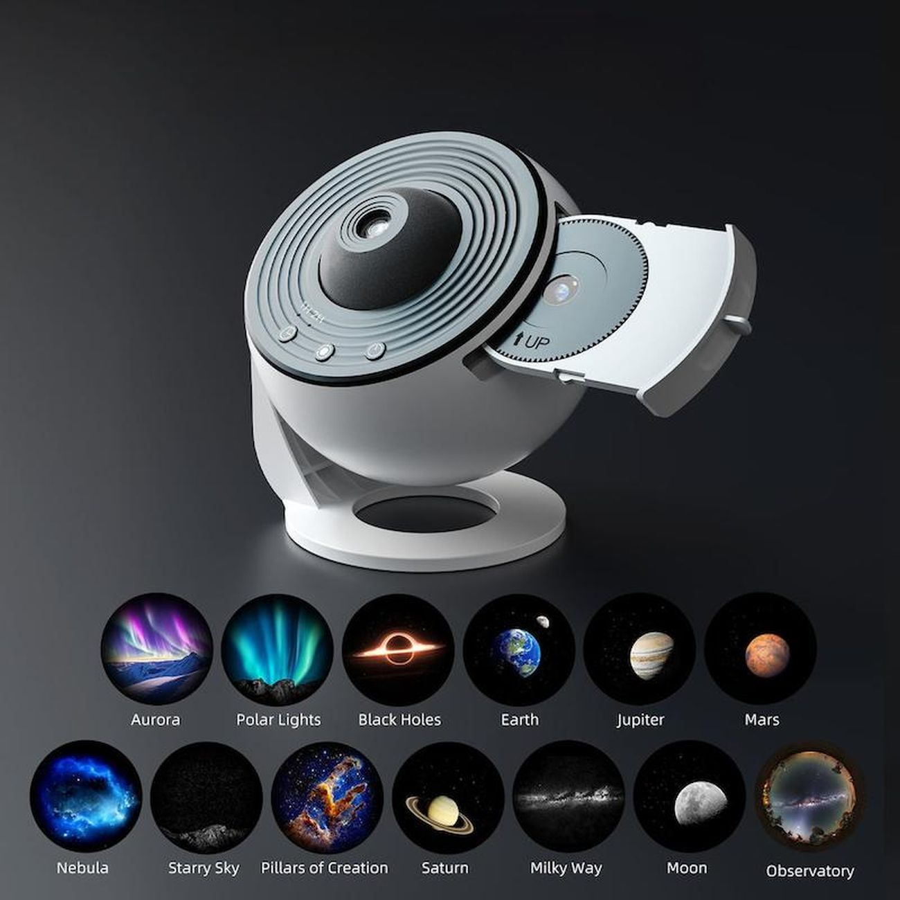 با پروژکتور کهکشانی ۱۳ دیسک Galaxy Projector 13 Disks ، آسمون پرستاره رو به اتاقت بیار. این دستگاه با 13 دیسک متنوع، طرحهای خیرهکنندهای از کهکشان، سحابی و ستارهها رو روی سقف و دیوار پخش میکنه و فضایی جادویی میسازه. نور قابل تنظیم و چرخش نرم دستگاه باعث میشه هر شب یه منظره تازه ببینی. مناسب برای دکور اتاق، استراحت شبانه یا خلق فضایی رویایی برای عکس و ویدیو.