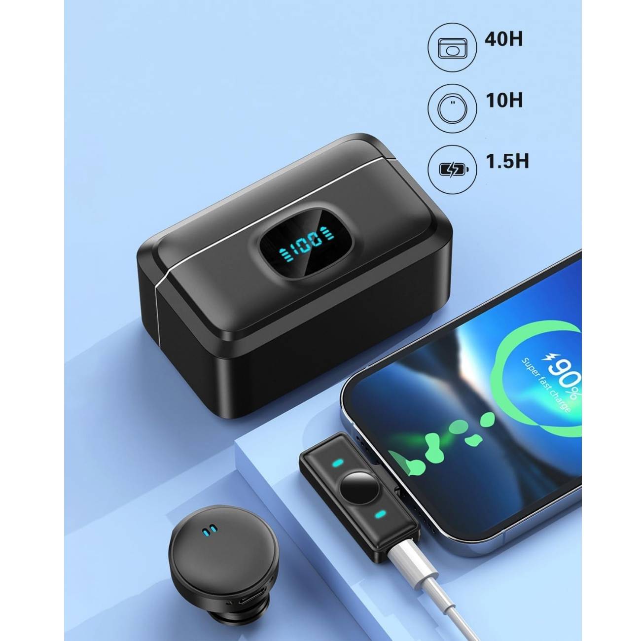 عمر باتری فوق‌العاده طولانی – تا ۲۸ ساعت ضبط + ۴۲ ساعت از طریق جعبه شارژ