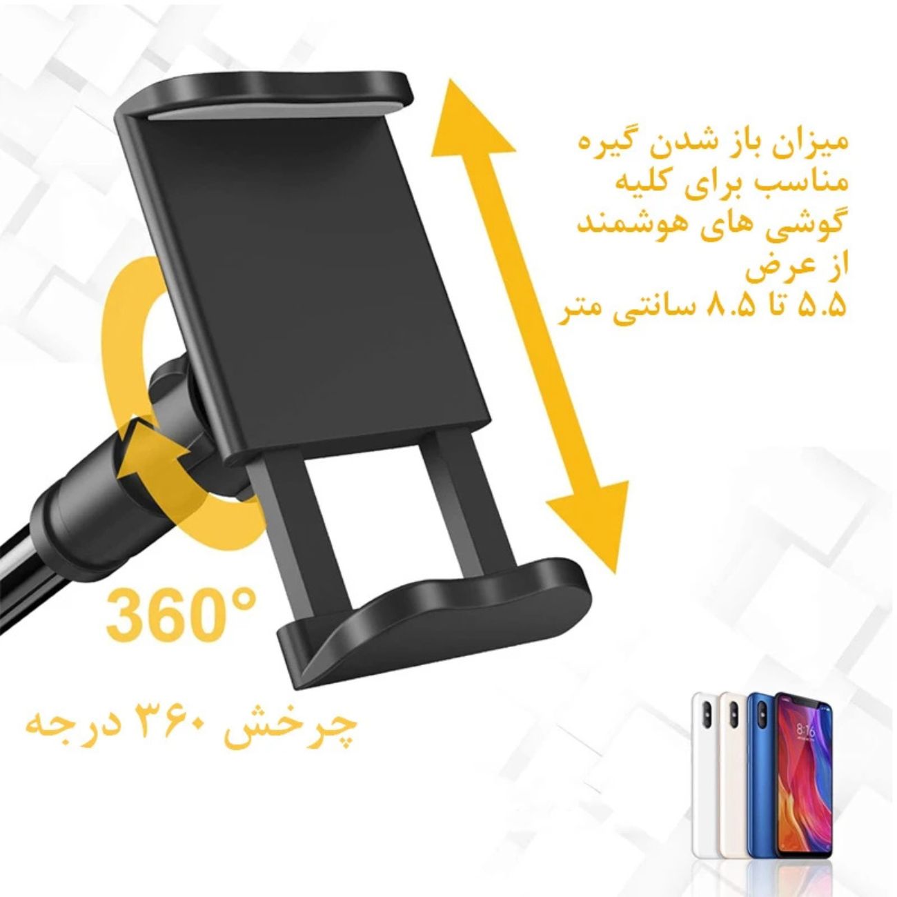 نگهدارنده گوشی این پایه مناسب کلیه گوشیهای هوشمند با عرض ۵.۵ تا ۸.۵ سانتیمتر است و به کمک پیچ تنظیم، گوشی بهسادگی در جای خود ثابت میشود. بدنه پایه از پلاستیک با کیفیت ABS ساخته شده که دوام و مقاومت بالایی دارد و تا سالها بدون تغییر شکل قابل استفاده است.