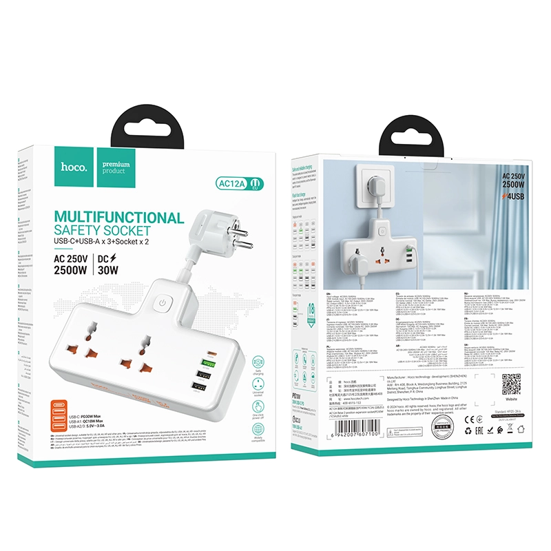چندراهی برق و شارژر هوکو Hoco AC12A Reise، همراه ایدهآل برای سفر و استفاده روزمره! با دو خروجی برق و دو پورت USB، همه دستگاههای شما را همزمان شارژ میکند. طراحی جمعوجور و سبک آن باعث میشود به راحتی در کیف یا کوله جای بگیرد و همراه همیشه شما باشد. ایمنی بالا، مقاوم و با کیفیت Hoco، تجربه شارژ مطمئن و سریع را برای شما فراهم میکند.