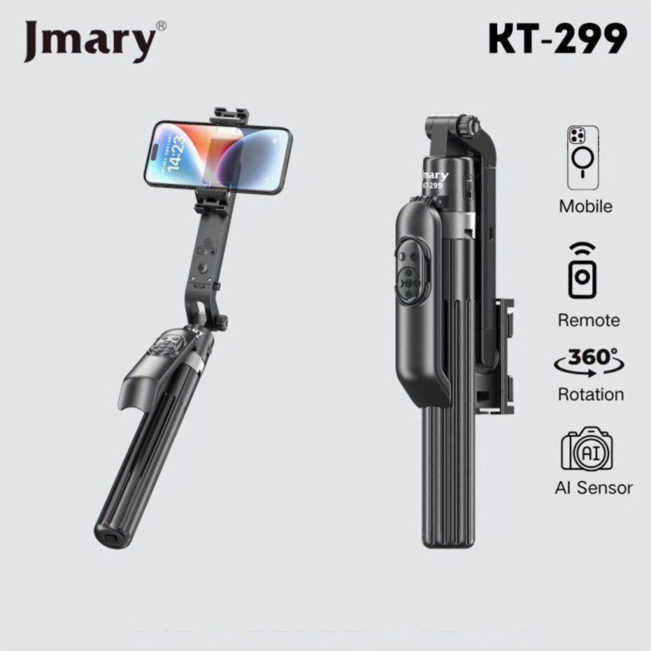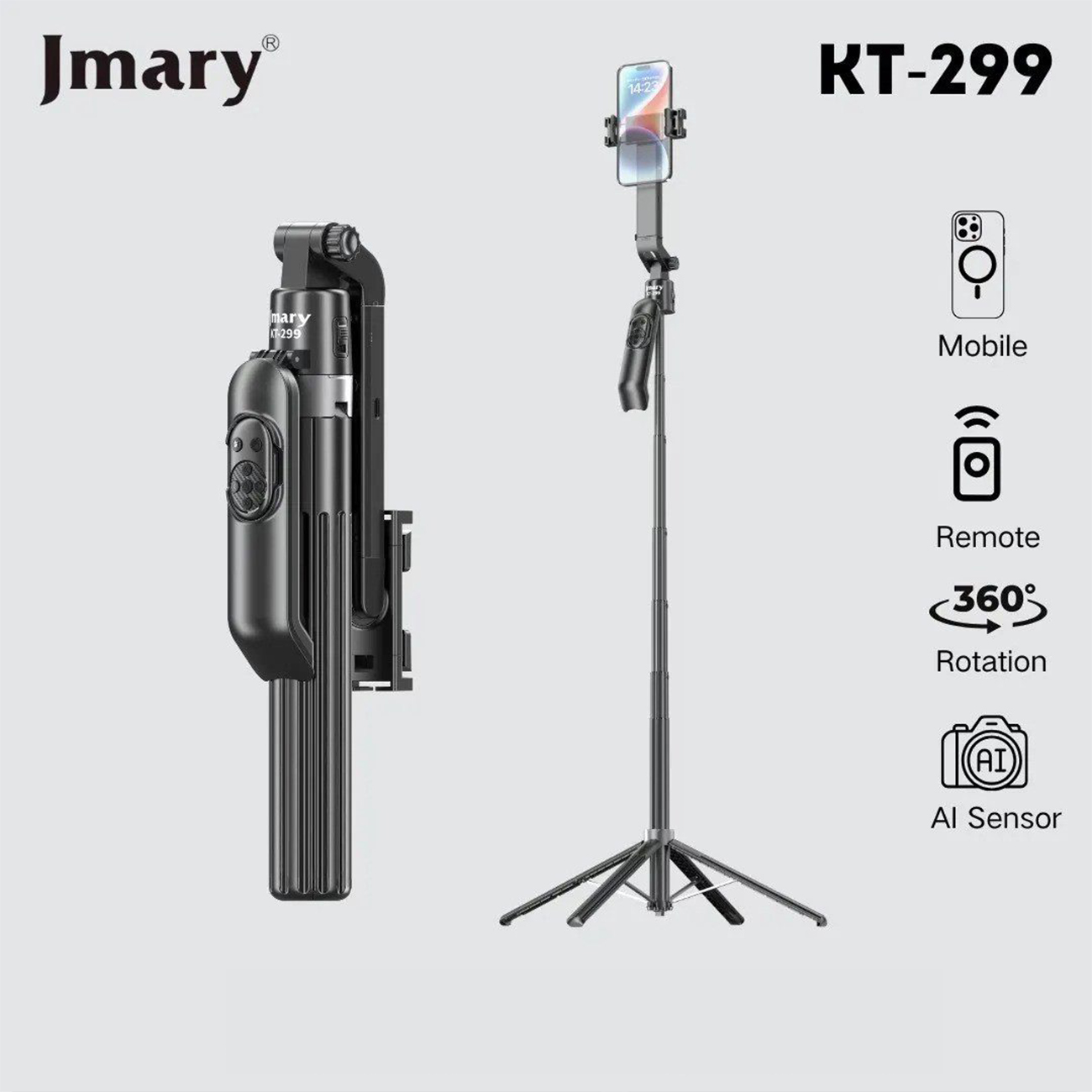 مهندسی هوشمند برای پایداری و کنترل از راه دور یکی از ویژگیهای متمایز جیماری KT-249، ریموت کنترل بلوتوثی آن است که تا شعاع ۱۰ متری به شما آزادی عمل کامل میدهد. دیگر نیازی نیست برای فشردن دکمه شاتر از غریبهها کمک بخواهید یا با تایمرهای خستهکننده سر و کله بزنید. همچنین، طراحی این مدل به گونهای است که در حالت جمعشده تنها ۳۴ سانتیمتر طول دارد؛ این یعنی یک استودیو متحرک که به راحتی در کیف لپتاپ یا جیب کناری کولهپشتی شما جا میشود.