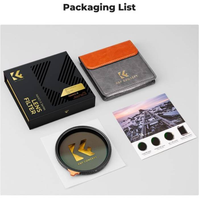 K&F Black Diffusion 1/4 & ND2-400 MRC Nano-X 77mm filter lens