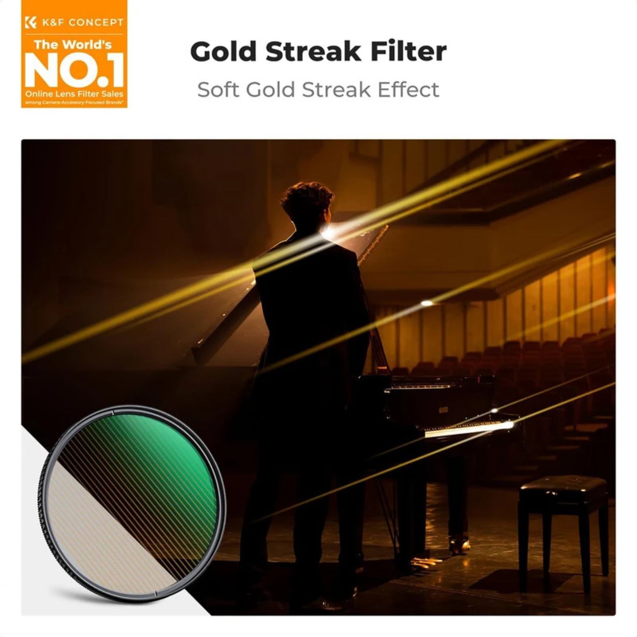 فیلتر لنز ترکیبی کی اند اف کانسپت مدل Star Gold Streak، ابزاری جادویی برای فیلمبرداران و عکاسان شب است که به دنبال خلق جلوههای بصری خیرهکننده و سینمایی هستند. این فیلتر فیلتر به فرد، دو قابلیت کاربردی را در یک قطعه شیشه ادغام کرده است: ایجاد نقاط ستارهای ۴ در محل منابع نوری و تولید خطوط درخشان طلایی (Gold Streak) که لنزهای گرانقیمت آنامورفیک در هالیوود است.