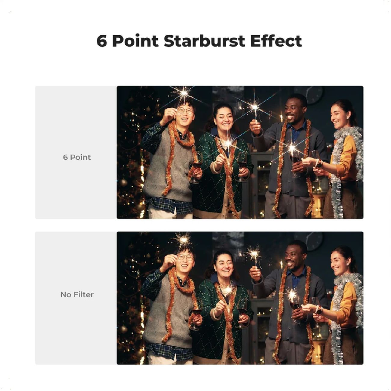 این فیلتر به ویژه برای عکاسی شبانه بسیار مناسب است. هنگامی که از مناظر شهری شبانه با چراغهای خیابان، چراغهای ساختمانها، و سایر منابع نوری قوی مانند تابلوهای نئون و چراغهای خودروها عکاسی میکنید، استفاده از فیلتر ستاره زن باعث میشود این منابع نوری به صورت پرتوهای درخشان و جذاب دیده شوند. همچنین، در جشنها و مراسم مختلف مانند عروسیها، جشن تولدها و فستیوالها، استفاده از فیلتر ستاره زن میتواند جلوهای زیبا و رویایی به عکسها ببخشد. شمعها، چراغها و آتشبازیها با این فیلتر به شکل پرتوهای خیرهکننده نمایش داده میشوند.