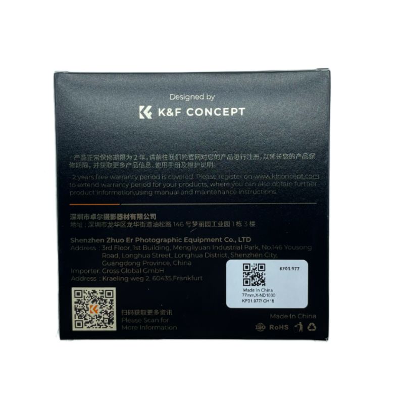• فیلتر لنز عکاسی کی اند اف K&F ND1000 NANO X 77MM Filter