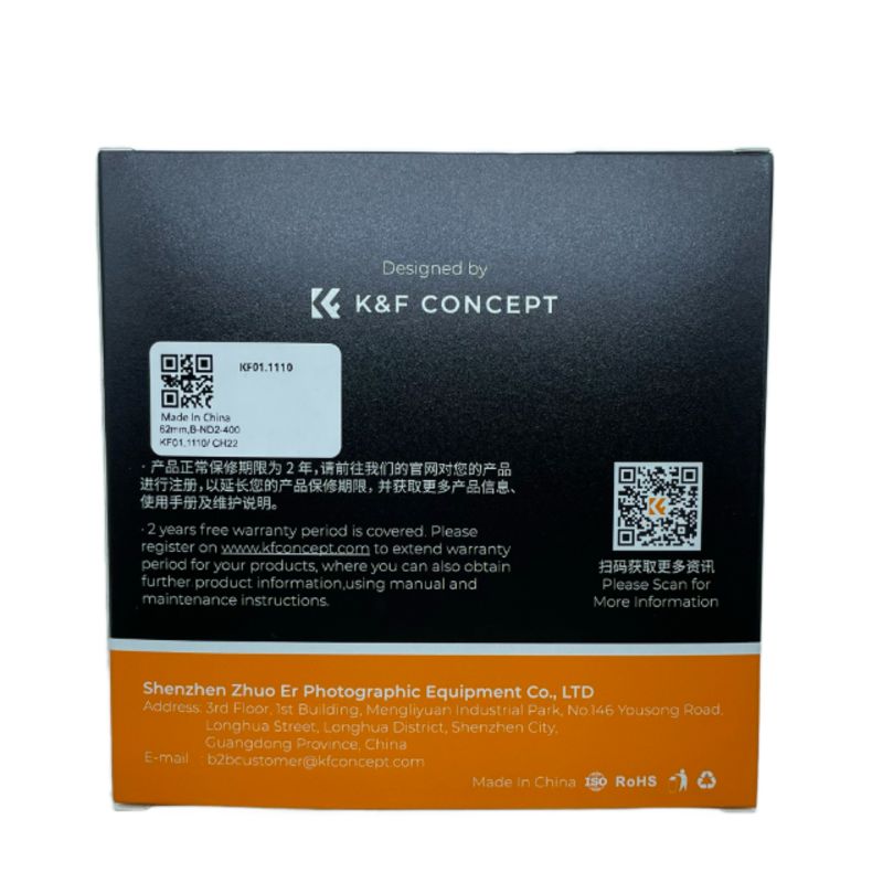 • فیلتر لنز عکاسی کی اند اف K&F ND2-400 NANO B 62MM Filter