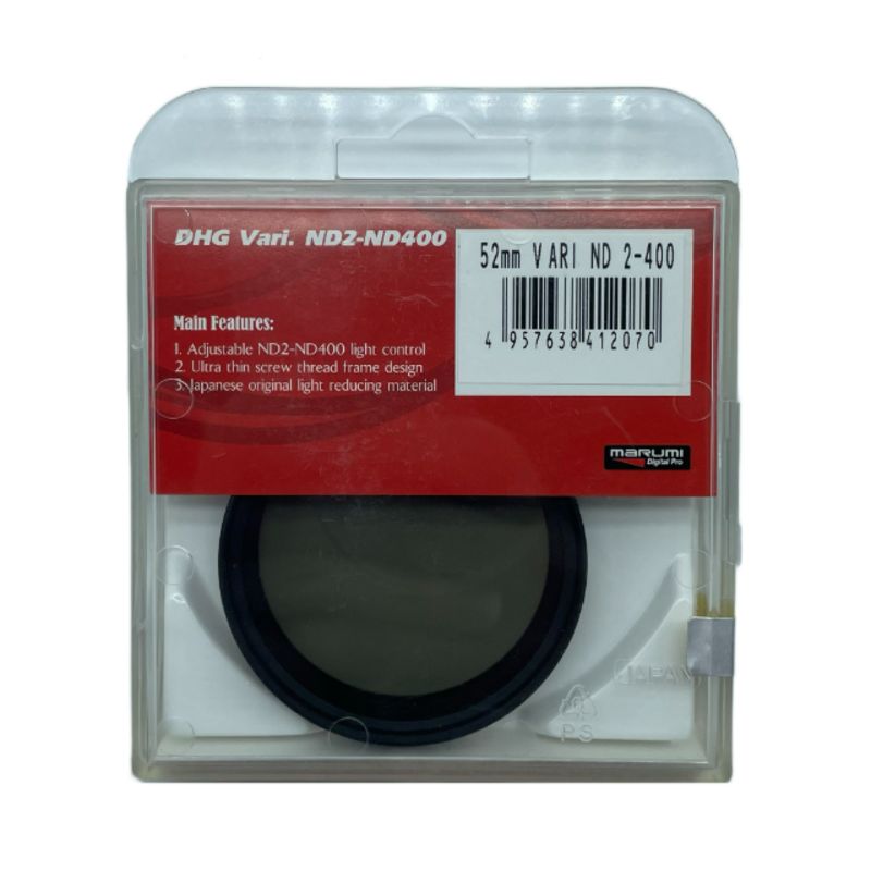 فیلتر Marumi ND2-400 DHG 52MM یک فیلتر ND متغیر (Variable ND) با کیفیت بسیار بالا است که به عکاسان و فیلمبرداران امکان میدهد میزان نور ورودی به لنز را به طور گستردهای کنترل کنند. این فیلتر به شما اجازه میدهد قدرت کاهشی معادل ۱ تا ۸.۵ استاپ (ND2 تا ND400) را تنظیم کنید، که برای دستیابی به سرعت شاتر پایین در روز روشن و ایجاد جلوه موشن بلور (Motion Blur) در آب یا ابرها ضروری است. پوشش DHG (Digital High Grade) آن تضمین میکند که بازتابهای ناخواسته و فلر به حداقل رسیده و رینگ فوقالعاده باریک آن، از تیرگی گوشههای تصویر (Vignetting) در لنزهای واید جلوگیری میکند.