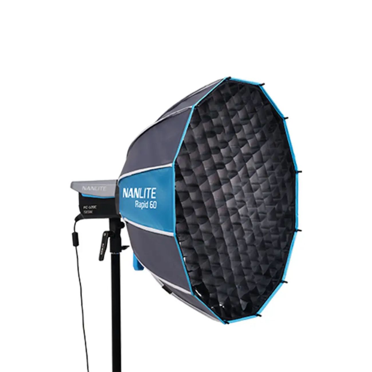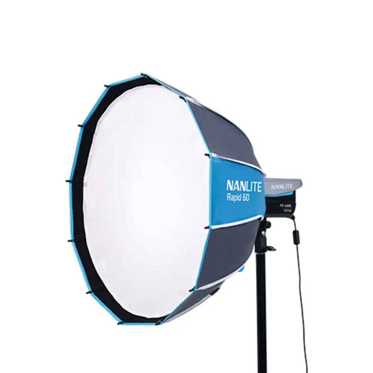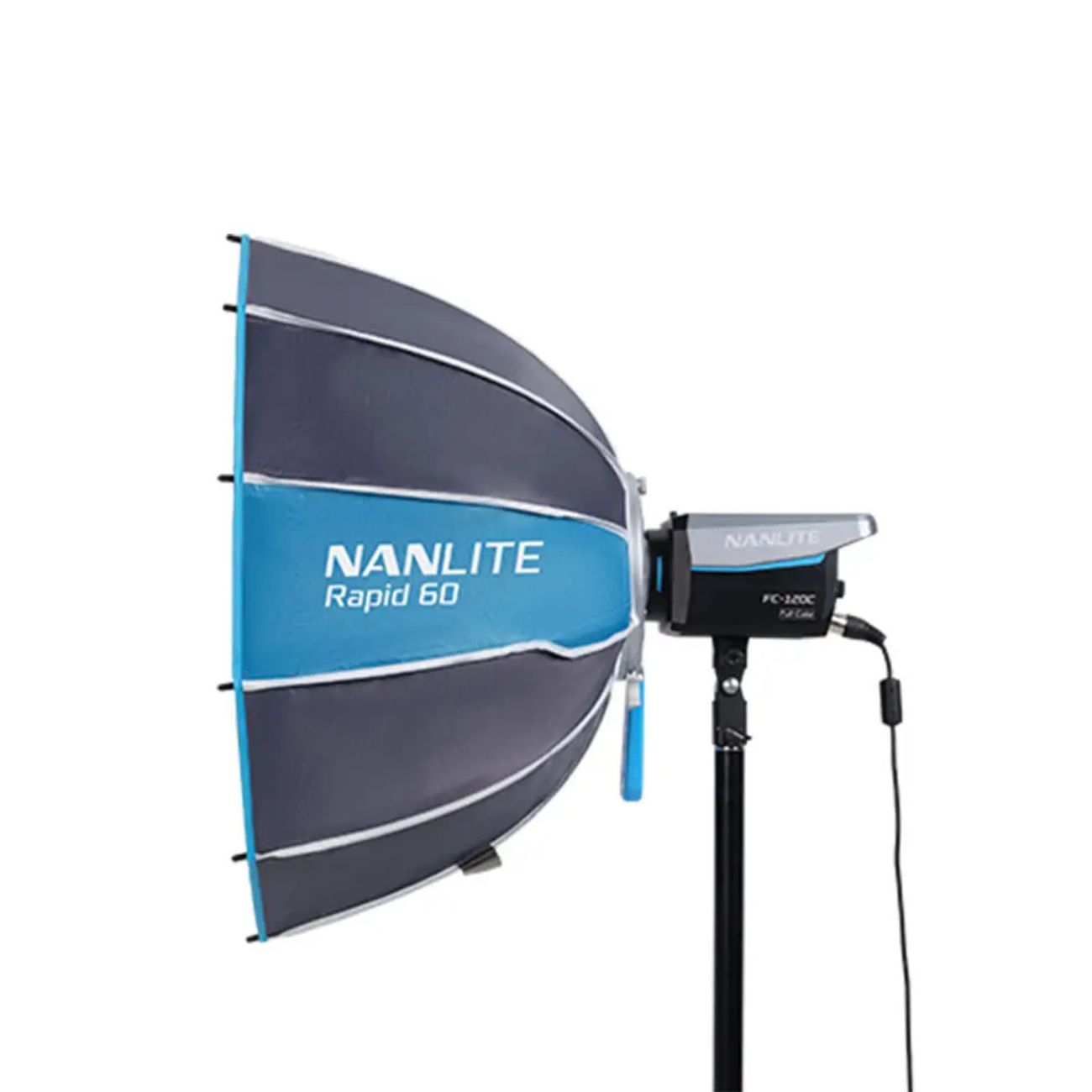 سافتباکس پارابولیک Nanlite Rapid 60 یکی از بهترین ابزارهای فرمدهی نور برای عکاسی و ویدیوگرافی حرفهای است که با طراحی پربازده و ساختار سریع باز و بستهشدن، نور نرم، کنترلشده و یکنواخت تولید میکند. این سافتباکس برای استفاده با نورهای FM Mount طراحی شده و با اسپیدرینگ همراه، قابل تبدیل به Bowens Mount نیز است — بنابراین با بسیاری از نورهای LED استودیویی قابل استفاده خواهد بود.