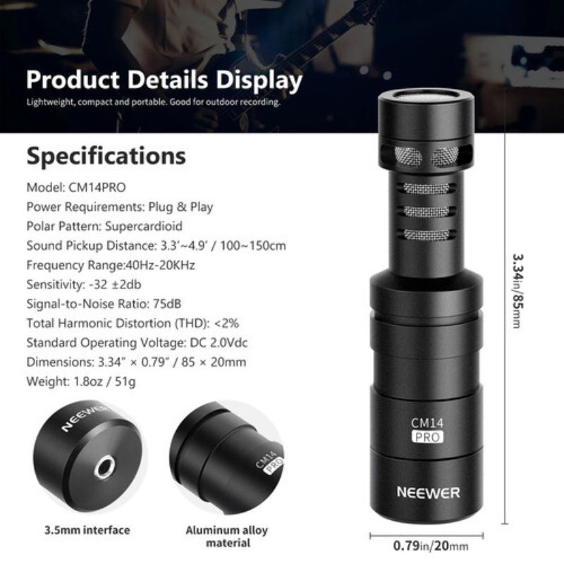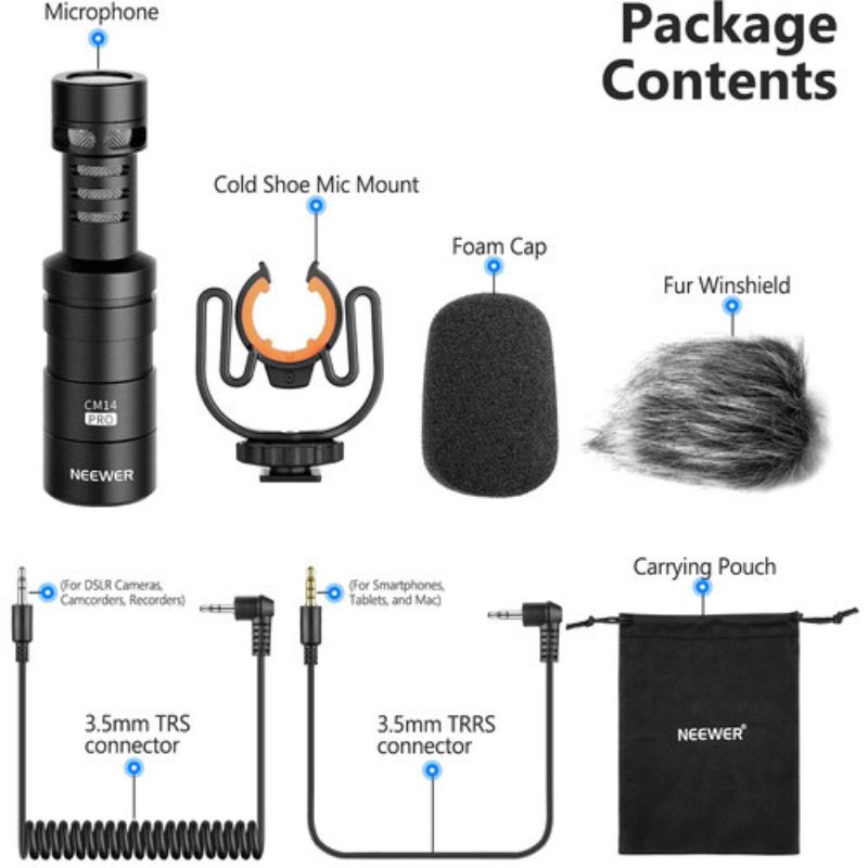 میکروفون Neewer CM14PRO Mini On‑Camera Microphone Kit انتخابی عالی برای کسانی است که دنبال صدای حرفهای و با کیفیت برای ویدیو، ولاگ، مصاحبه یا استریم هستند. این میکروفون کاندنسر با الگوی Super‑cardioid صدا را با وضوح بالا و نویز پایین ضبط میکند، و با خروجی 3.5 mm و کابلهای همراه، به راحتی به دوربین یا موبایل متصل میشود. طراحی جمعوجور، همراه با شاکماینت، محافظ باد و کیف حمل باعث میشود حمل و استفاده آن بسیار راحت باشد — ایدهآل برای تولید محتوا در حرکت.