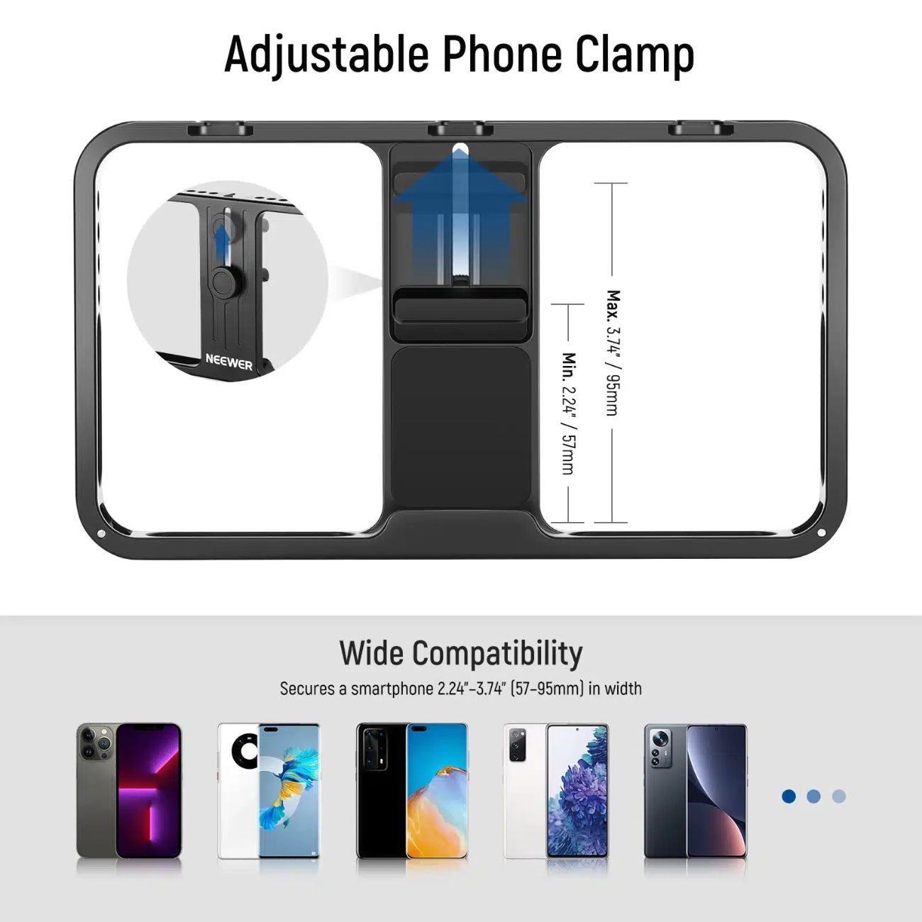 سازگاری بالا: برای اکثر گوشیهای هوشمند با عرض 57–95 میلیمتر مناسب است.