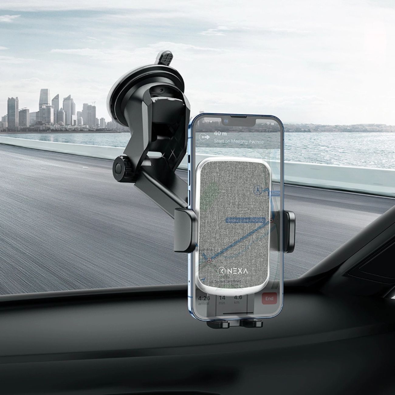 نکسا H26 از یک بازوی تلسکوپی بهره میبرد که به شما امکان میدهد گوشی را به فاصله دلخواه خود تنظیم کنید. همچنین، مکانیزم چرخش 360 درجه (که در تمام هولدرهای حرفهای انتظار میرود)، تضمین میکند که میتوانید دستگاه خود را به صورت عمودی یا افقی، با بهترین زاویه دید برای مسیریابی یا مشاهده اعلانات، تنظیم کنید. این محصول به طور ویژه برای گوشیهای 4.5 تا 6.7 اینچی مناسب است و گیره آن میتواند موبایلهایی با عرض 55 تا 95 میلیمتر را محکم نگه دارد.