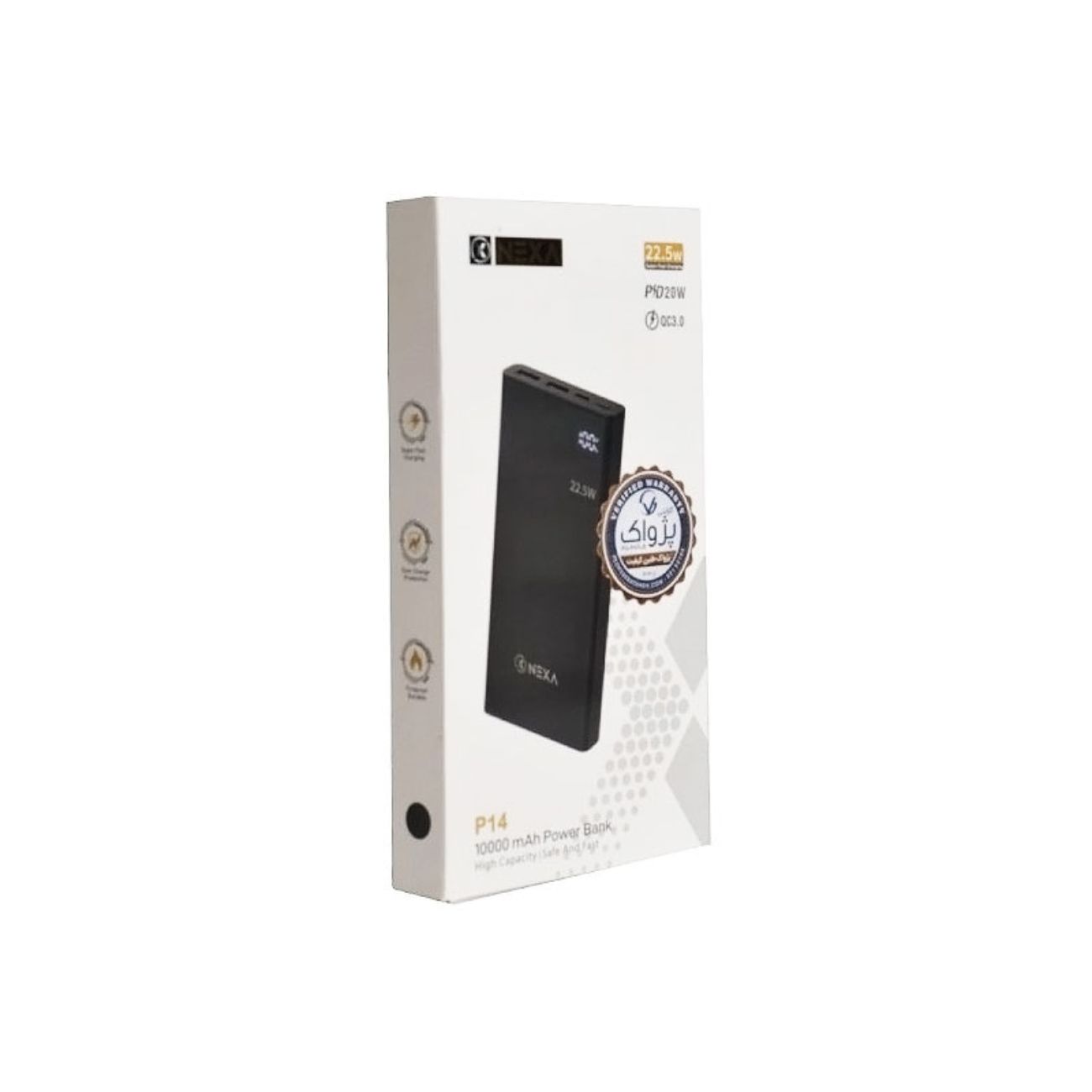 نِکسا P14 از بدنهای ساخته شده از ABS و PC مقاوم در برابر آتش بهره میبرد که علاوه بر دوام بالا، ایمنی کاربر را در برابر نوسانات و گرمای بیش از حد تضمین میکند. ابعاد جمعوجور و وزن سبک آن، حمل پاوربانک را در کیف یا جیب آسان میسازد. همچنین، یک نمایشگر LED دقیق، میزان شارژ باقیمانده پاوربانک را نشان میدهد تا هیچگاه بدون اطلاع از وضعیت شارژ آن، غافلگیر نشوید.