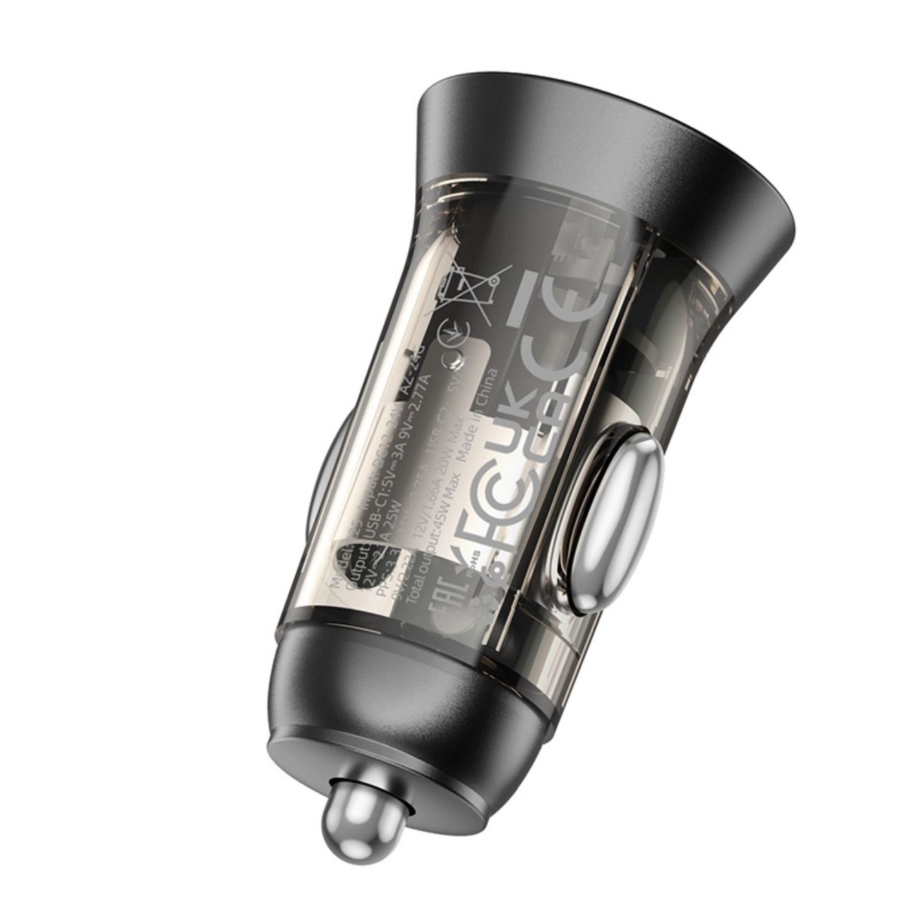 بدنه این دستگاه از پلیکربنات مقاوم در برابر شعله و آلیاژ آلومینیوم ساخته شده که دوام بالا و ایمنی را تضمین میکند. طراحی فشرده و سبک (حدود 24 گرم) باعث میشود حمل و استفاده از آن در خودرو بسیار راحت باشد. همچنین شارژر با سیستم برق خودرو از 12 تا 24 ولت DC سازگار است، که آن را برای همه نوع خودرو مناسب میکند.
