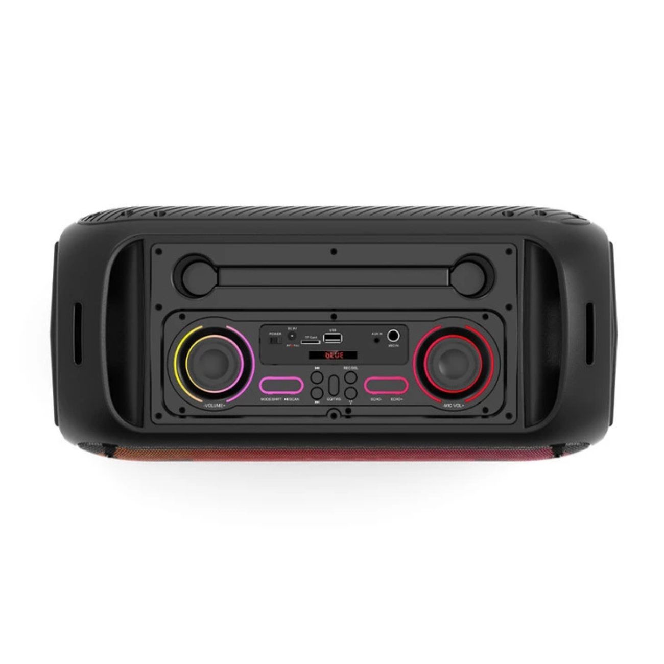 یکی از ویژگیهای برجسته این مدل، فناوری TWS است؛ شما میتوانید دو عدد از این اسپیکر را به یکدیگر متصل کرده و صدای استریو با قدرت دوبرابر را تجربه کنید. بدنه محصول از پلاستیک فشرده باکیفیت ساخته شده که در برابر ضربات احتمالی مقاوم است. علاوه بر بلوتوث، امکان پخش موسیقی از طریق فلش مموری، کارت حافظه و کابل AUX نیز فراهم شده تا در هر شرایطی به محتوای صوتی خود دسترسی داشته باشید. باتری ۱۲۰۰ میلیآمپری آن نیز شارژدهی مناسبی را برای استفادههای روزمره و دورهمیها تضمین میکند.