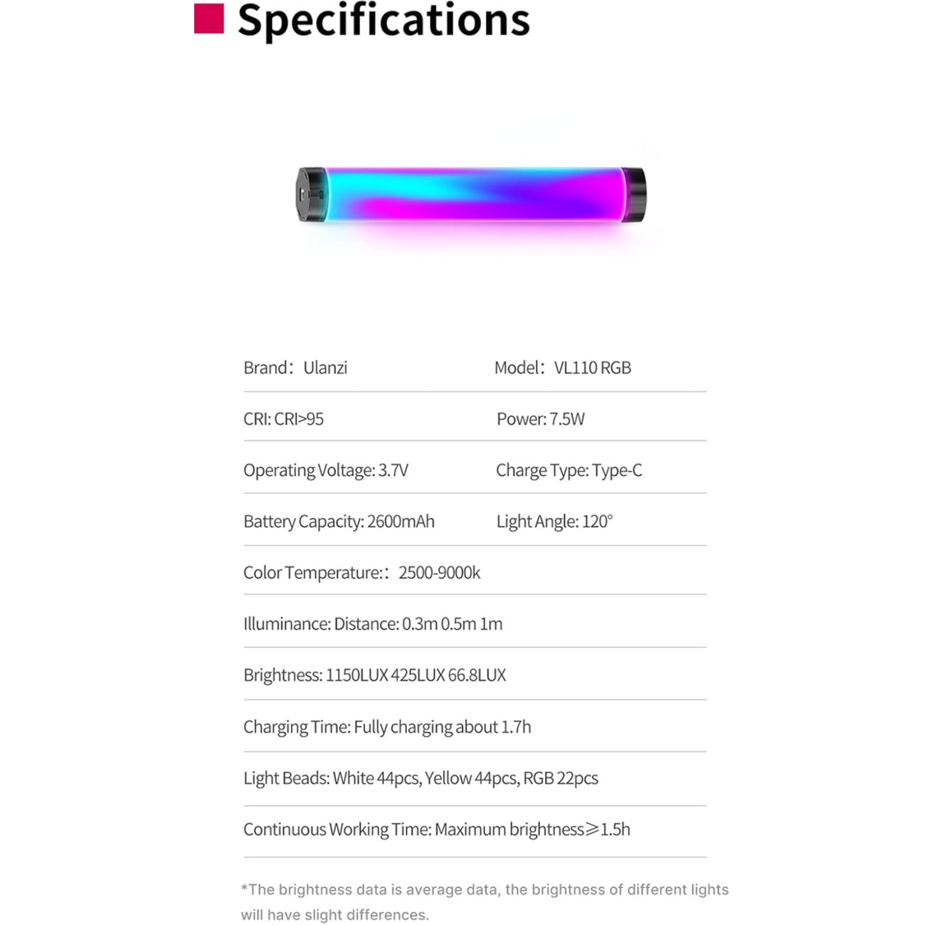 نور باتومی RGB یولانزی ULANZI VL110 RGB Light Stick