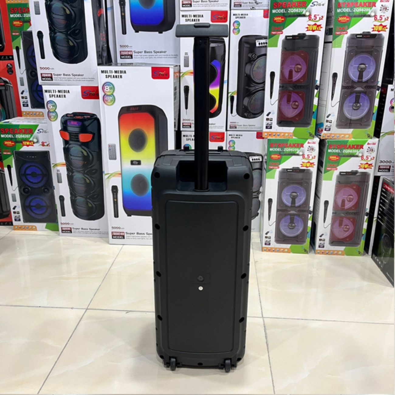 اسپیکر بلوتوثی قابل حمل زد کیو اس یکی از قدرتمندترین و جذابترین گزینهها برای افرادی است که به دنبال صدایی رسا و نورپردازی خیرهکننده در مهمانیهای خود هستند. این محصول با بهرهگیری از دو ووفر 8 اینچی، توانایی تولید صدایی با حجم بالا و بیس عمیق را دارد که محیطهای باز و سالنهای بزرگ را به خوبی پوشش میدهد. طراحی بدنه چمدانی و وجود چرخ و دسته، حمل و نقل این غول صوتی را بسیار آسان کرده است.