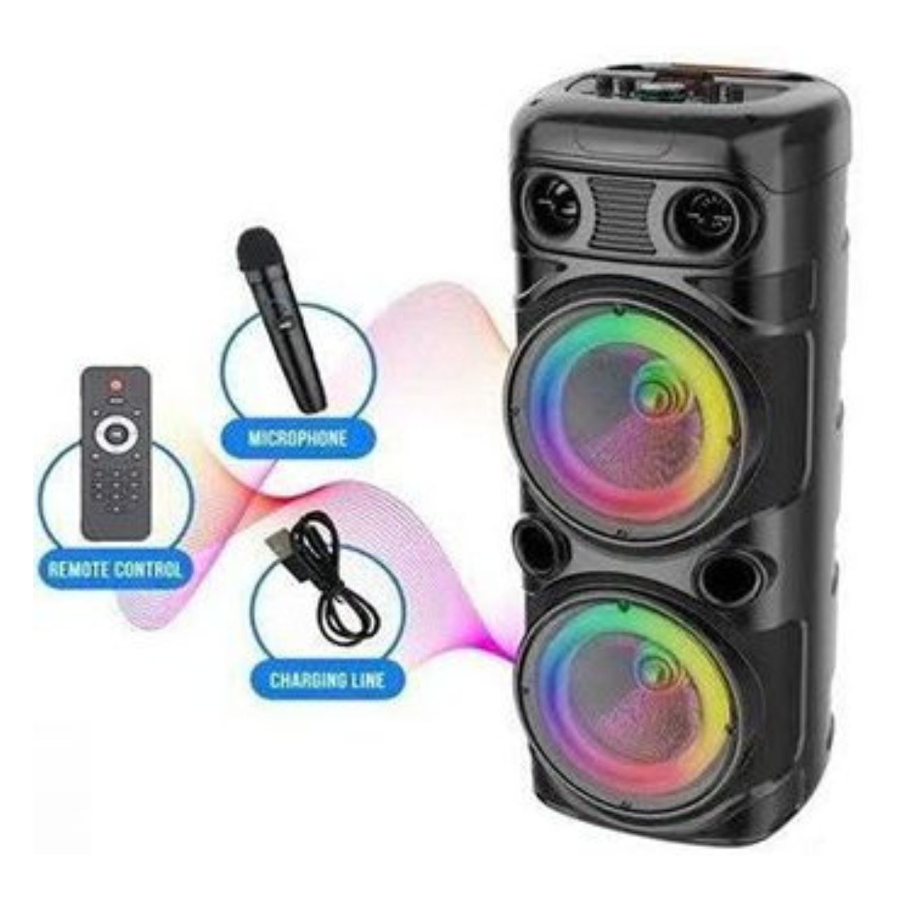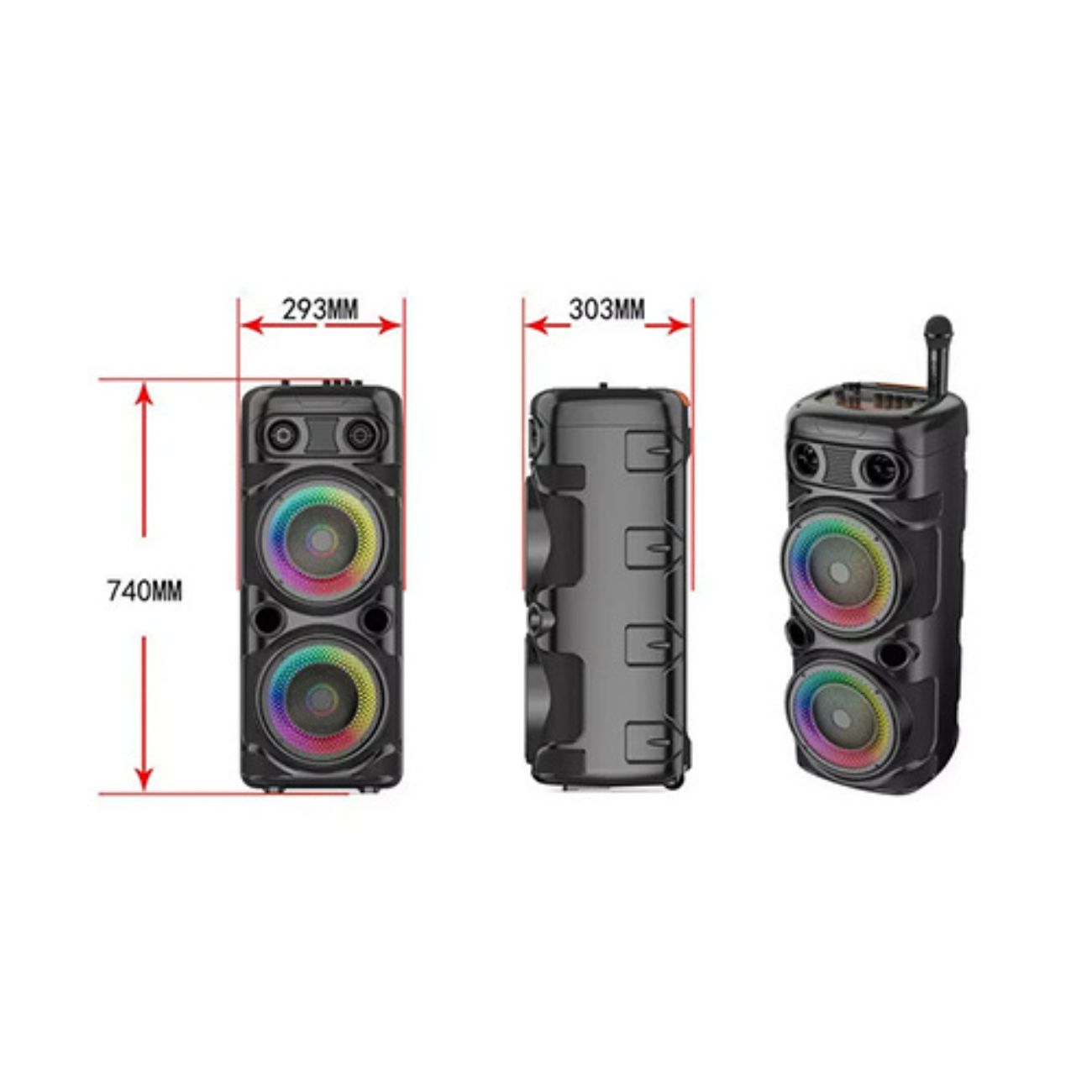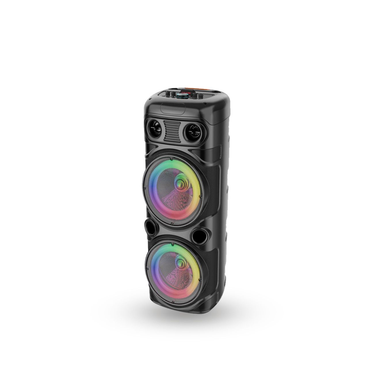 یکی از ویژگیهای برجسته این مدل، رقص نور RGB بسیار جذاب آن است که با ریتم موسیقی تغییر کرده و جلوه بصری را به محیط میبخشد. همچنین قابلیت TWS را به شما امکان می دهد که دو دستگاه از این مدل را به هم متصل کرده و صدایی استریو و دو برابر قوی تر را تجربه کنید. ورودی میکروفون و همراه داشتن یک میکروفون سیمدار در بستهبندی، این دستگاه را به یک سیستم کارائوکه خانگی تبدیل میکند که میتواند ساعتها سرگرمی برای دوستان و خانواده فراهم کند.