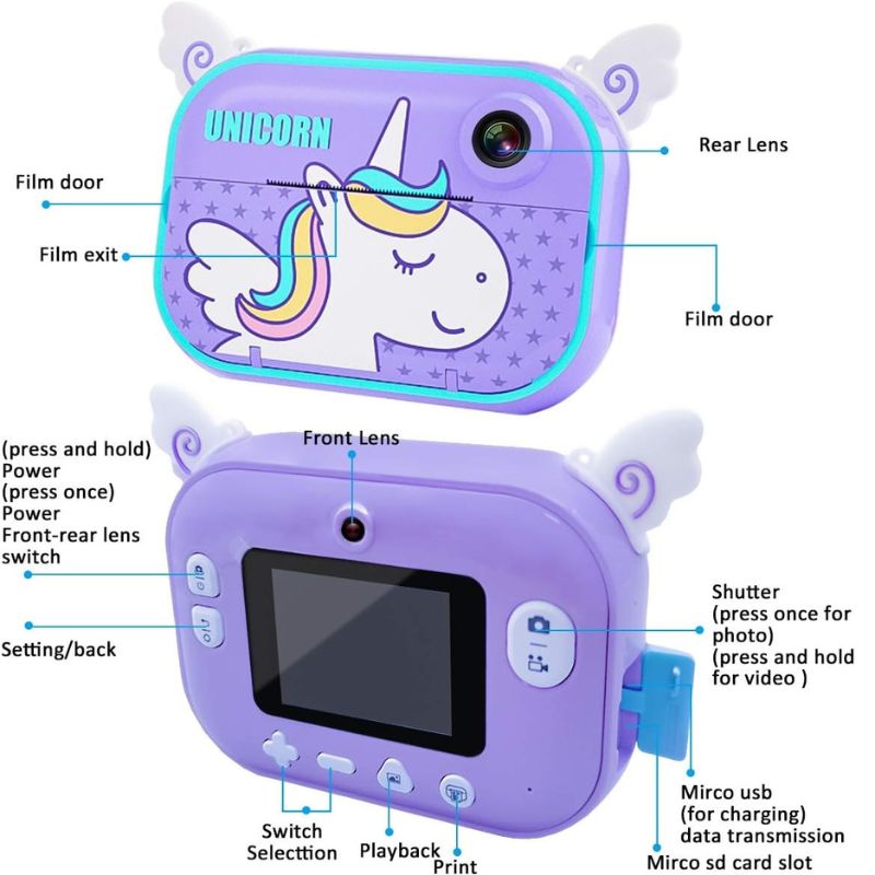 دوربین چاپ سریع مناسب کودکان سایز عکس: 5.5x8 سانتیمتر دارای صفحه نمایش سنسور 12 مگاپیکسلی با کیفیت فیلمبرداری با کیفیت 1080P دارای 4 فیلتر رنگی، 2 الگوی نوشتاری، 6 الگوی کارتونی و 12 فریم عکس کارتونی دارای 14 زبان قابل انتخاب دارای میکروفون امکان عکسبرداری پیاپی با 3 عکس در ثانیه دارای فیلترهای جذاب جهت ویرایش عکس پشتیبانی از کارت حافظه Micro SD تا ظرفیت 32 گیگابایت ساخته شده از مواد با کیفیت با دوام بالا هدیه ای مناسب برای کودکان 3 تا 12 سال نورسنجی اتوماتیک حداقل سرعت شاتر: 30 ثانیه رنگ: بنفش