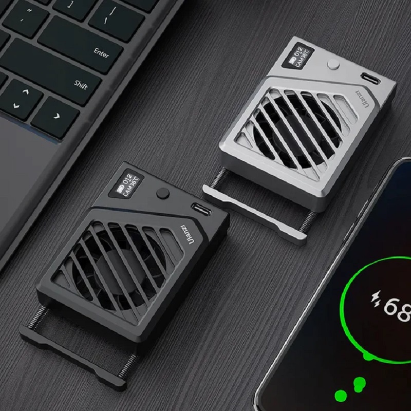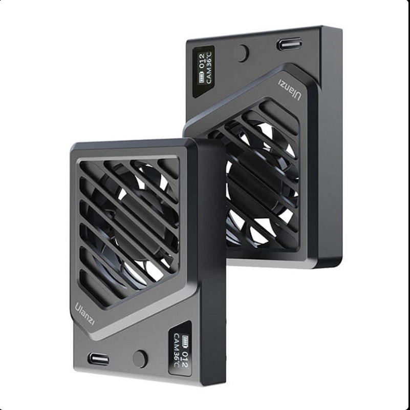 یکی از نکات جالب در طراحی این فن، نمایشگر OLED آن است که به شما این امکان را میدهد تا دما و سرعت فن را در زمان واقعی مشاهده کنید. این ویژگی باعث میشود که بتوانید به راحتی وضعیت دمای دوربین را بررسی کرده و از عملکرد مناسب فن اطمینان حاصل کنید. علاوه بر این، اتصال Type-C برای شارژ کردن و امکان اتصال به پاور بانک در هنگام استفاده از فن، به شما این امکان را میدهد که بدون نگرانی از تمام شدن باتری، به فیلمبرداری ادامه دهید. این ویژگی در شرایطی که نیاز به استفاده طولانی مدت دارید، بسیار مفید است.